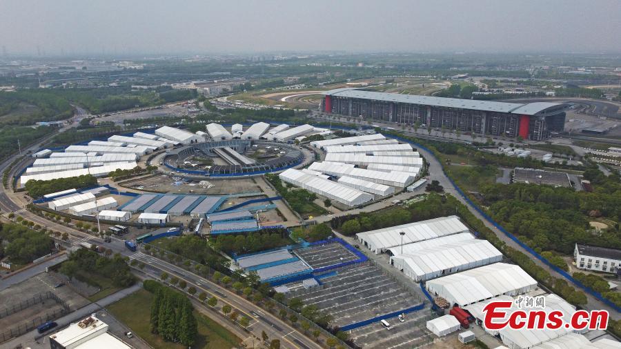 Aerial view photo shows a makeshift hospital converted from the Shanghai International Circuit to aid the fight against resurging COVID-19 in east China's Shanghai, April 20, 2022. Located at Jiading district, the hospital has a capacity of 14,000 beds. (Photo: China News Service/Yin Liqin)