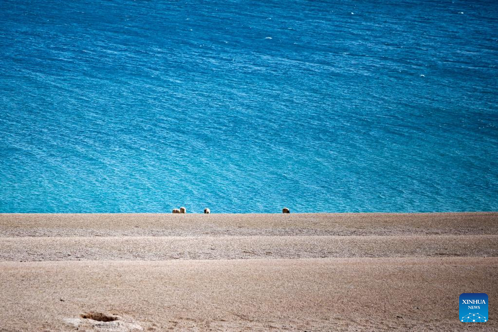 Photo taken on April 13, 2022 shows the scenery of Qagoi Lake in Nagqu, southwest China's Tibet Autonomous Region.