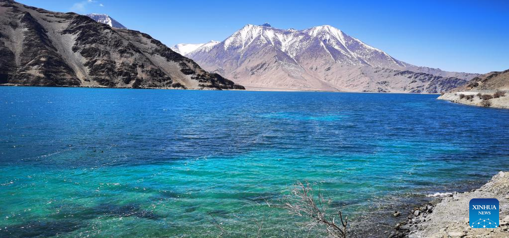 Photo taken with a mobile phone shows a lake in Ge'gyai County, southwest China's Tibet Autonomous Region, April 12, 2022.