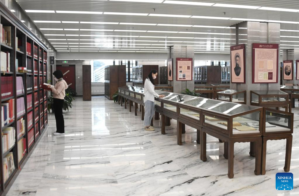 The Peking University Library, dating back to 1898, was originally a book collection building for the Imperial University of Peking. Nowadays, the library, with rich resources, is equipped with modern technology and facilities. (Xinhua/Ren Chao)