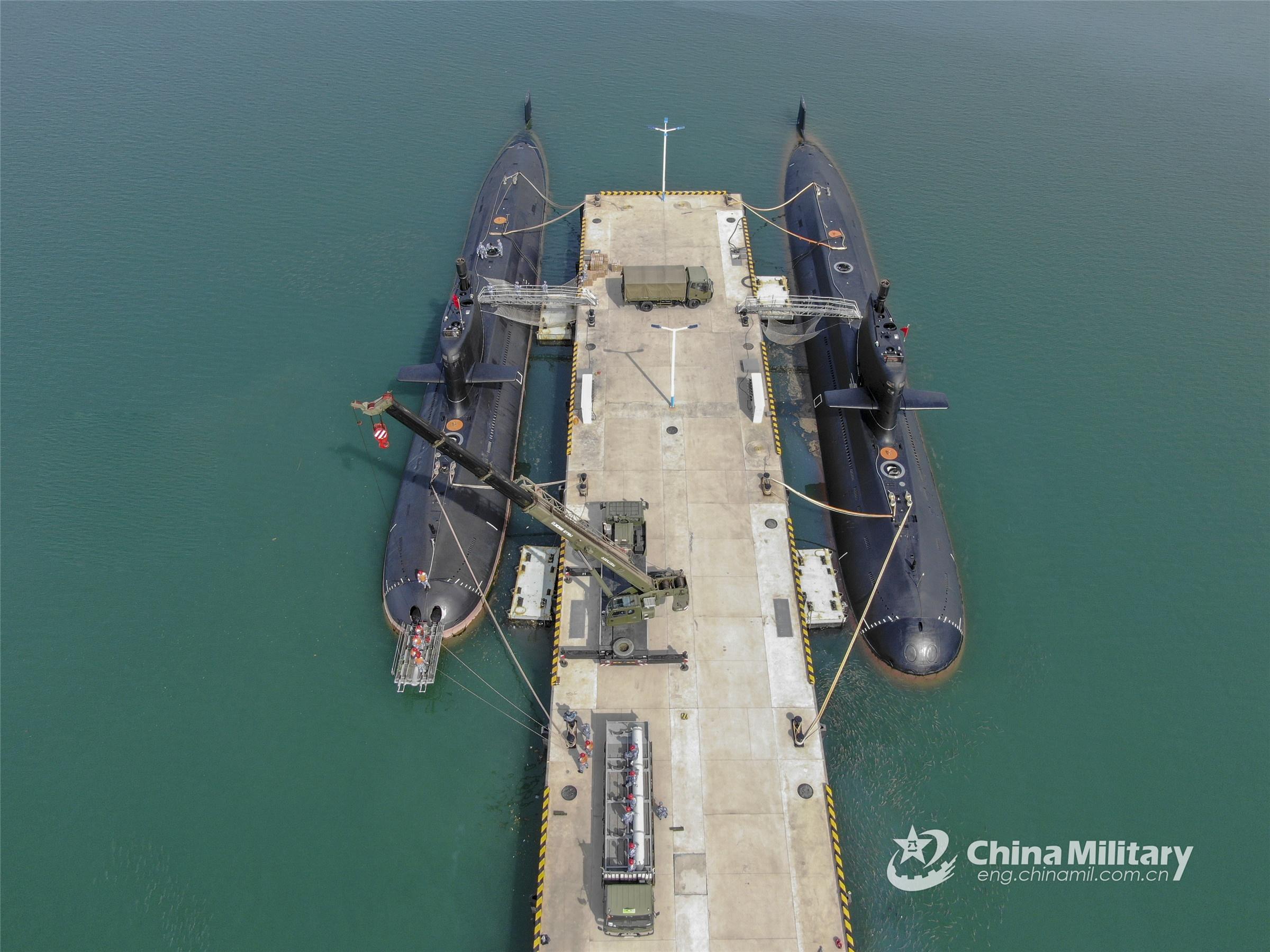 Sailors load missiles onto the submarines on March 22, 2022. Submarines attached to a navy flotilla under the PLA Northern Theatre Command had their ammunitions refreshed on March 22. (eng.chinamil.com.cn/Photo by Wu Haodong)
