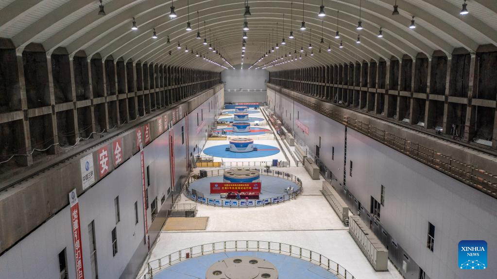 Aerial photo taken on April 22, 2022 shows the underground workshop of the Baihetan hydropower station in southwest China. The Baihetan hydropower station, a major project in China's west-east power transmission program, is located on the Jinsha River, the upper section of the Yangtze River in southwest China.