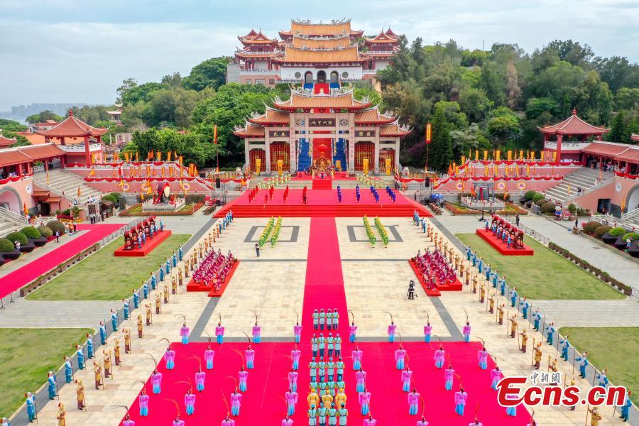 A grand ceremony marking the 1,062nd birthday of the sea goddess Mazu is held in her birthplace of Meizhou of Putian City, east China's Fujian Province, April 23, 2022. (Photo: China News Service/Lin Chunsheng)