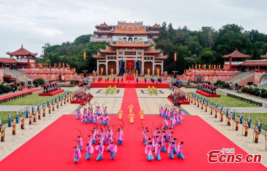 A grand ceremony marking the 1,062nd birthday of the sea goddess Mazu is held in her birthplace of Meizhou of Putian City, east China's Fujian Province, April 23, 2022. (Photo: China News Service/Lin Chunsheng)