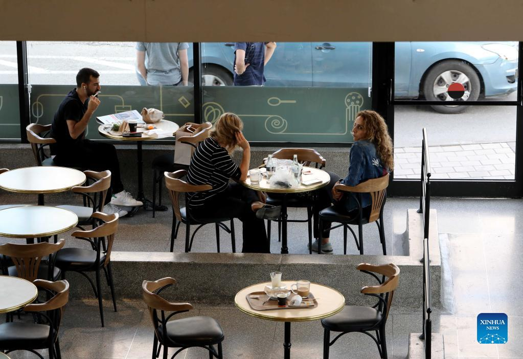 People dine at a shopping mall in central Israeli city of Modiin, on April 24, 2022. The decision to cancel the requirement of wearing masks indoors in Israel became effective on Saturday night, amid a drop in the number of new COVID-19 cases. (Photo by Gil Cohen Magen/Xinhua)