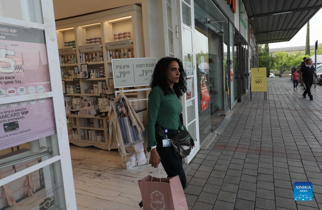 People visit a shopping mall in central Israeli city of Modiin, on April 24, 2022. The decision to cancel the requirement of wearing masks indoors in Israel became effective on Saturday night, amid a drop in the number of new COVID-19 cases. (Photo by Gil Cohen Magen/Xinhua)