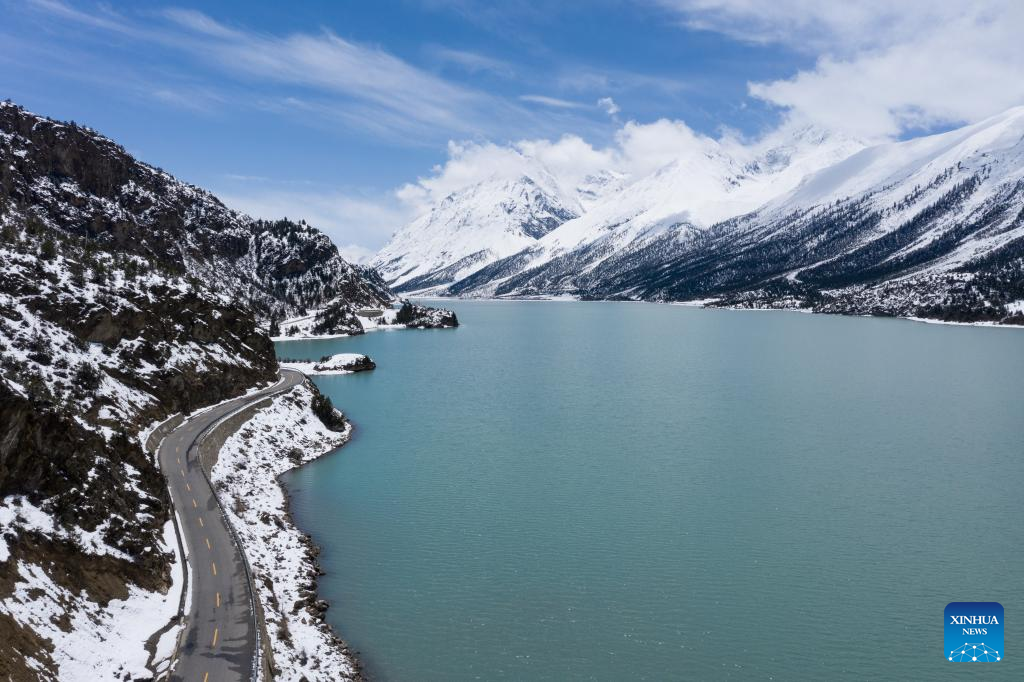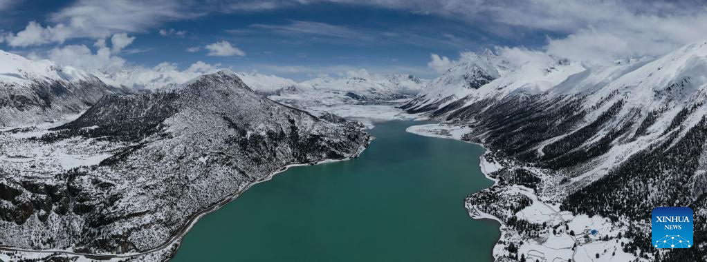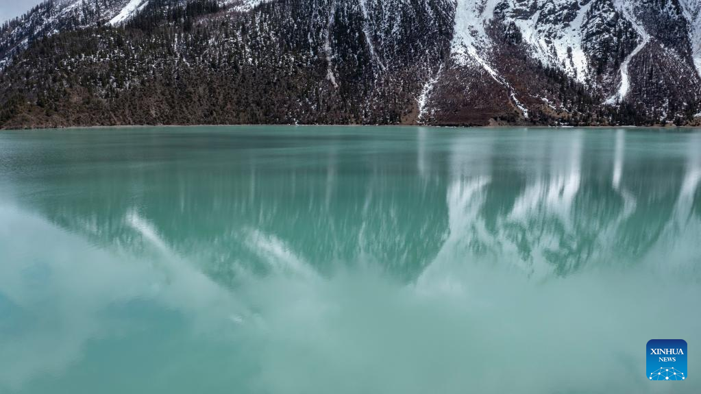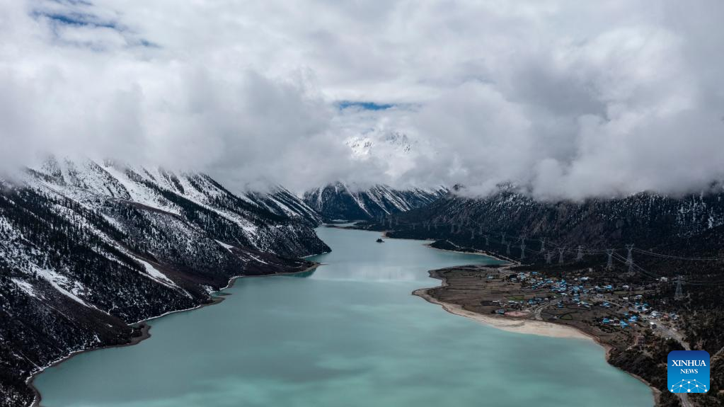 Aerial photo taken on April 24, 2022 shows the scenery of Ra'og Lake in Qamdo, southwest China's Tibet Autonomous Region. (Xinhua/Sun Fei)