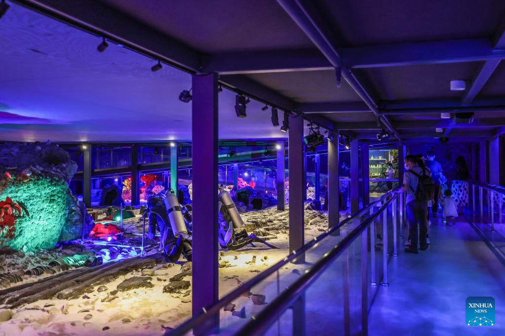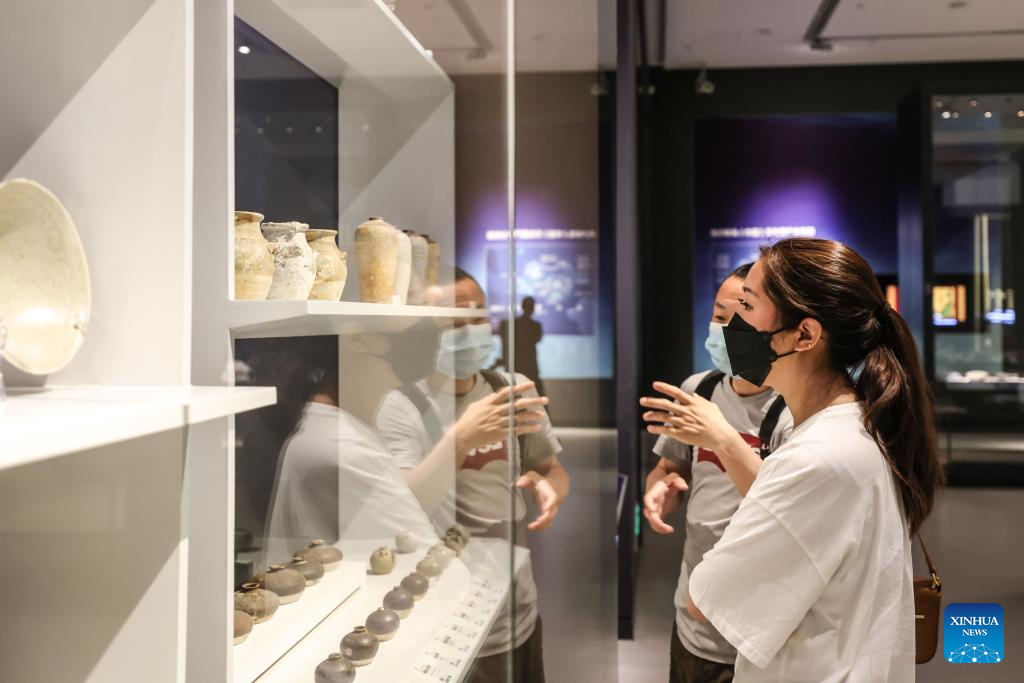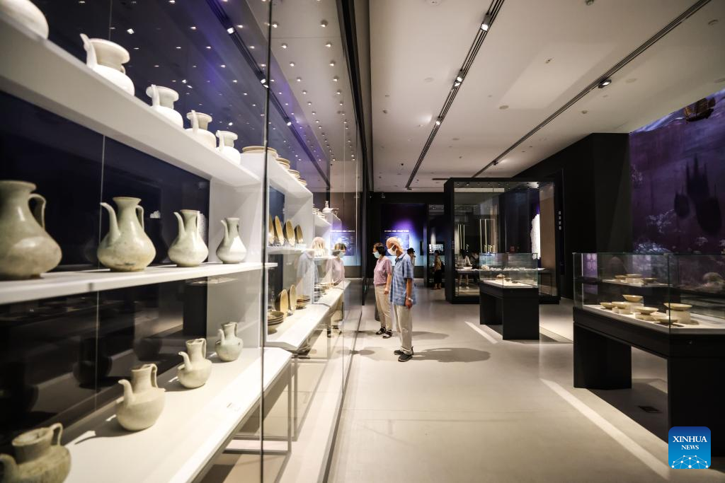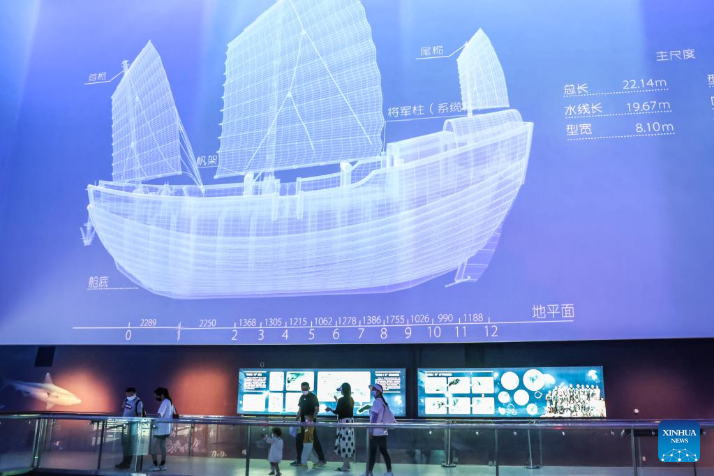 Tourists visit an exhibition featuring marine civilization of the South China Sea at Hainan Museum in Haikou, south China's Hainan Province, April 24, 2022. (Xinhua/Zhang Liyun)