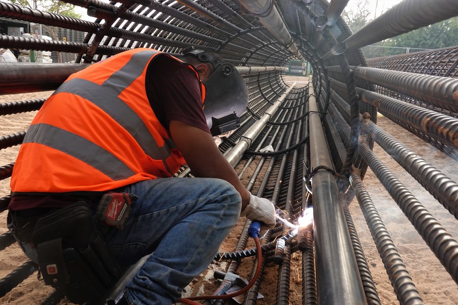 A Chinese constructor works at the construction site of the Tel Aviv Light Rail Green Line in northern Tel Aviv, Israel, April 24, 2022. (Xinhua/Wang Zhuolun)