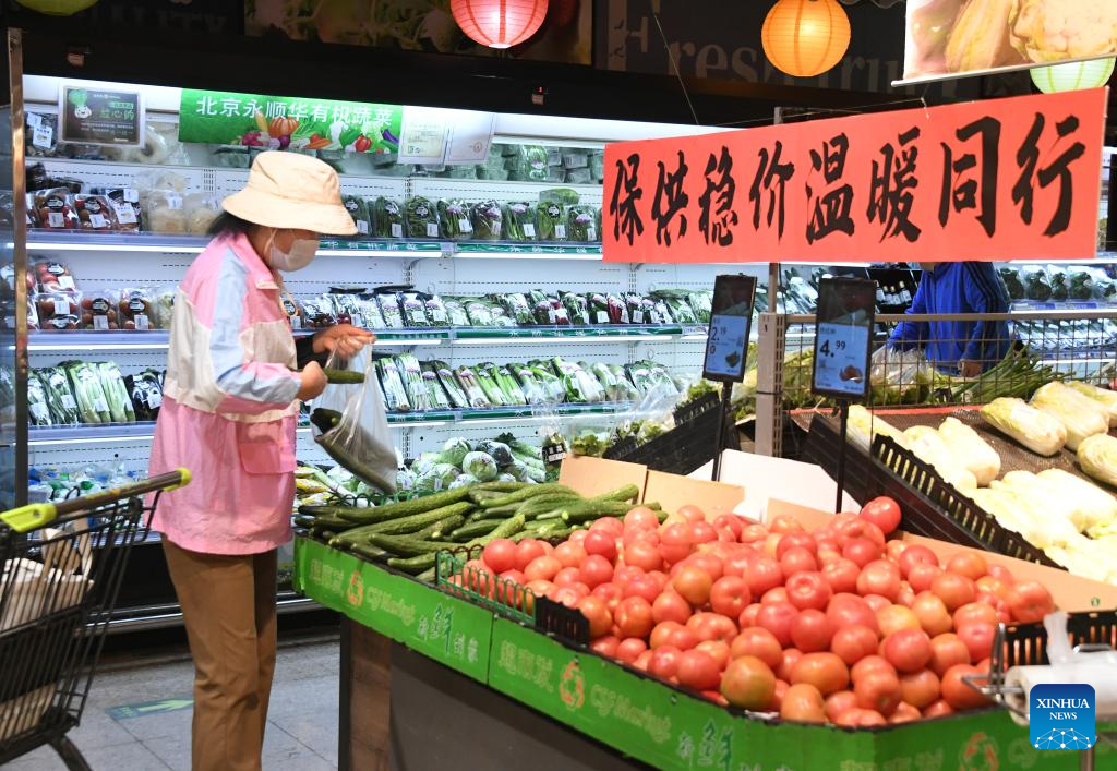 Agricultural products wholesale markets, supermarkets and logistics companies in Beijing have taken measures to ensure the supply of daily necessities for residents following a recent COVID-19 resurgence. The supply of daily necessities in Beijing are now sufficient and stable. (Xinhua/Ren Chao)