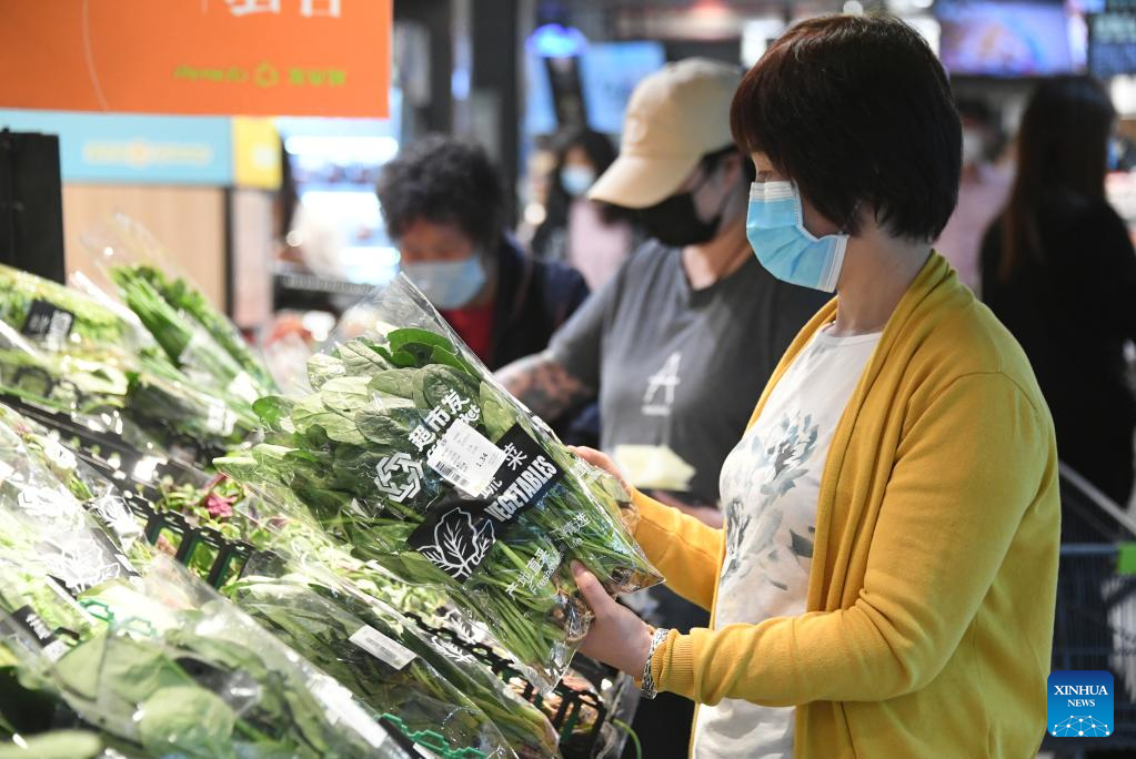 Citizens select vegetables at a supermarket in Haidian District, Beijing, capital of China, April 26, 2022.