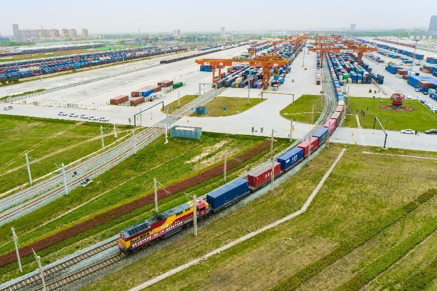 The first international freight train trip from Xi’an, capital of northwest China’s Shaanxi province to Vientiane, capital of Laos, via the China-Laos Railway starts from Xi’an International Logistics and Trade Park, April 22, 2022. (People’s Daily Online/Liu Xiang)
