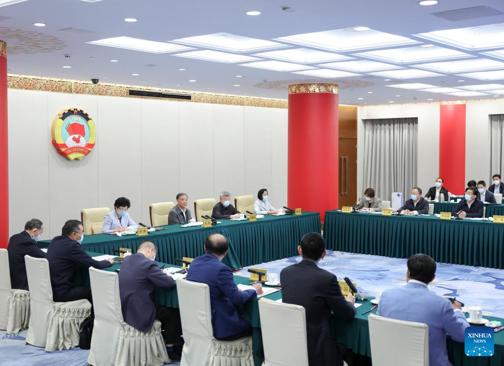 Wang Yang, a member of the Standing Committee of the Political Bureau of the Communist Party of China (CPC) Central Committee and chairman of the Chinese People's Political Consultative Conference (CPPCC) National Committee, presides over a biweekly consultation session of the 13th CPPCC National Committee in Beijing, capital of China, April 26, 2022. (Xinhua/Ding Lin)