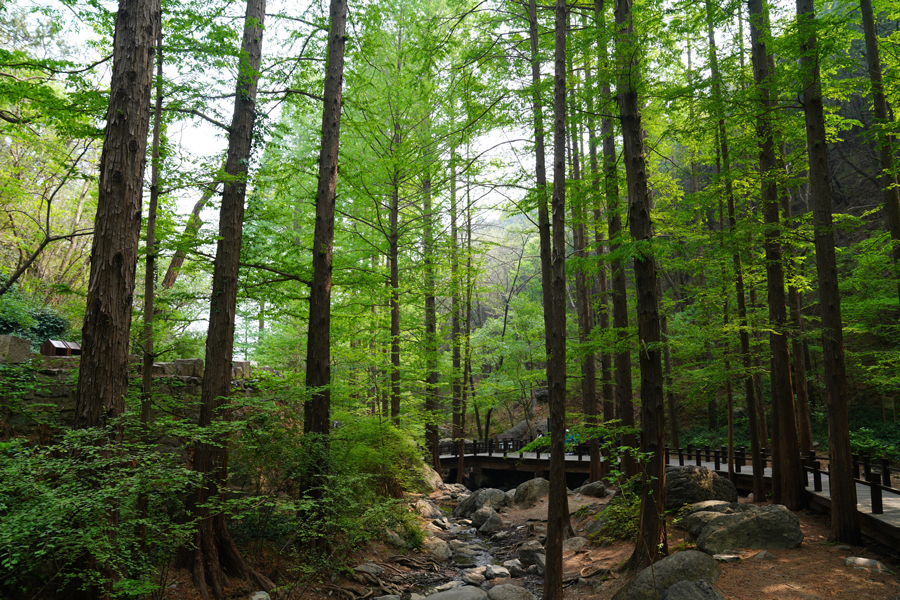 Photo taken on April 25, 2022 shows the spring scenery of metasequoia at Cherry Valley, China's National Botanical Garden in Beijing, capital of China. Metasequoia, also known as Dawn Redwood is one of the world's oldest extant tree species and the "living fossils" of the plant kingdom. Metasequoia has been selected for the logo of the National Botanical Garden. (People's Daily Online/Zhou Yu)