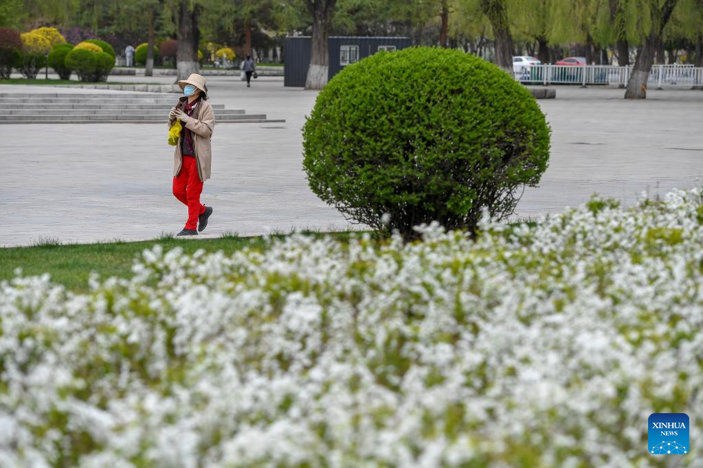 A citizen takes a walk in Jilin City, northeast China's Jilin Province, April 28, 2022.