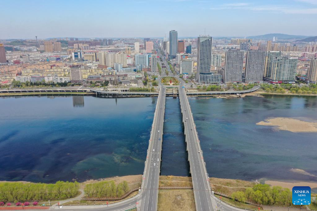 Aerial photo taken on April 28, 2022 shows a view of Jilin City, northeast China's Jilin Province.