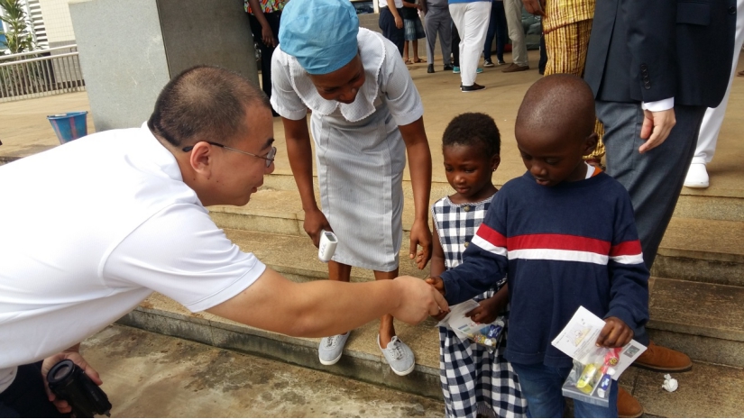 A free clinic activity for children is held by a Chinese medical aid team in Sierra Leone and an expert team sent to the country by the Chinese Center for Disease Control and Prevention. (Photo courtesy of the Chinese Center for Disease Control and Prevention)
