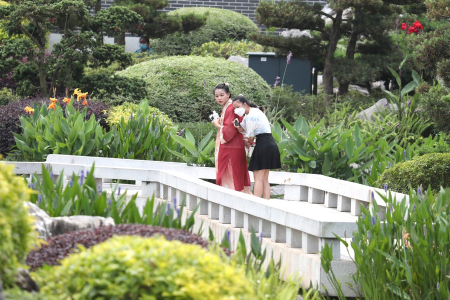 Tourists visit the Museum of Chinese Gardens and Landscape Architecture during the Labor Day holiday in Beijing, capital of China, April 30, 2022. (Xinhua/Yin Dongxun)