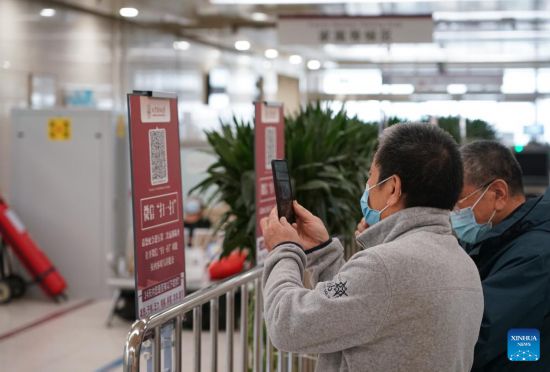 Relatives of patients scan QR codes to have their health status registered before entering the emergency department of Beijing Chao-Yang Hosptial in Beijing, capital of China, May 2, 2022. Amid the recent COVID-19 resurgence, staff members at Beijing Chao-Yang Hospital have been working hard to maintain efficient emergency medical services. (Xinhua/Chen Zhonghao)