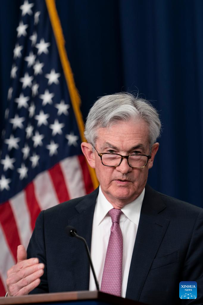 U.S. Federal Reserve Chair Jerome Powell attends a press conference in Washington, D.C., the United States, on May 4, 2022. The U.S. Federal Reserve on Wednesday raised its benchmark interest rate by a half percentage point, marking the sharpest rate hike since 2000, as it takes more aggressive steps to rein in the highest inflation in four decades. (Xinhua/Liu Jie)