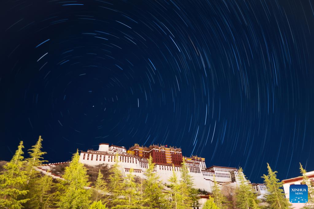 Composite photo shows star trails over Potala Palace in Lhasa, southwest China's Tibet Autonomous Region, May 4, 2022. (Xinhua/Zhou Dixiao)