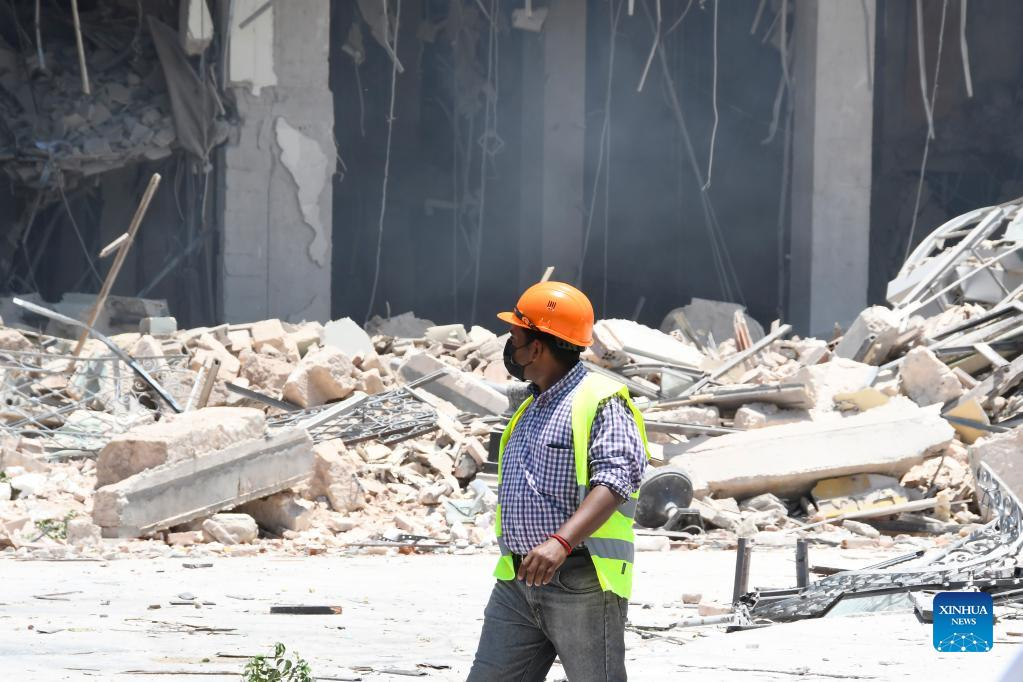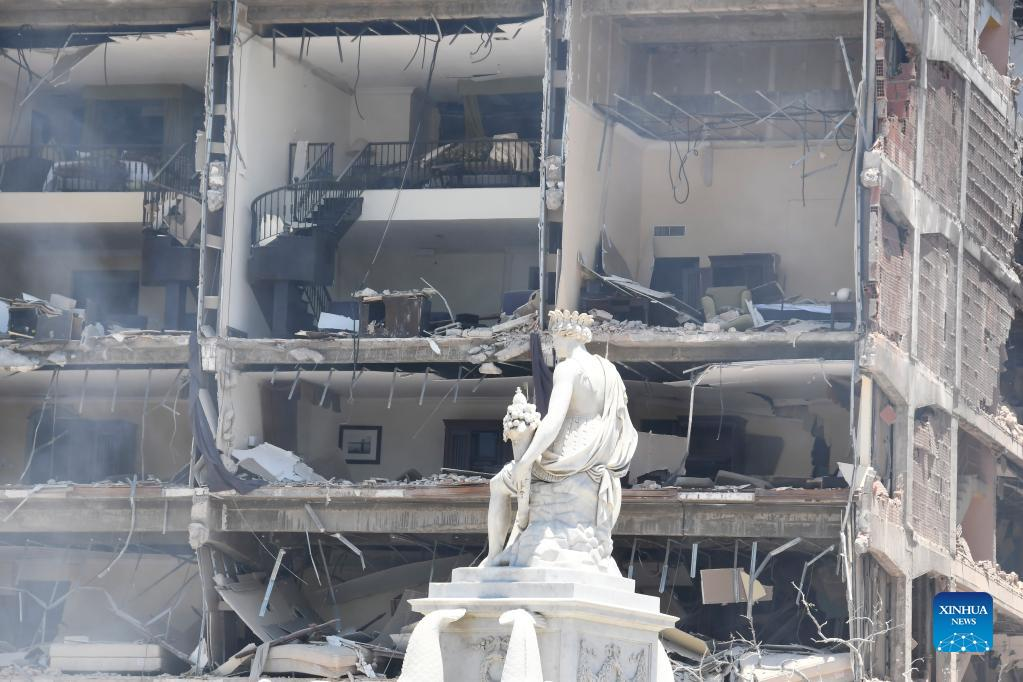 Photo taken on May 6, 2022 shows the site where an explosion occurred at Hotel Saratoga in Havana, Cuba. At least eight people were killed and over 30 others injured after an explosion ripped through the hotel in downtown Havana Friday morning, official sources reported. (Photo by Joaquin Hernandez/Xinhua)