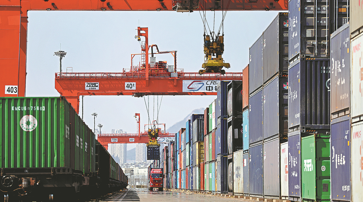 Containers are piled up at a port in Dalian, Liaoning province. [Photo/Xinhua]