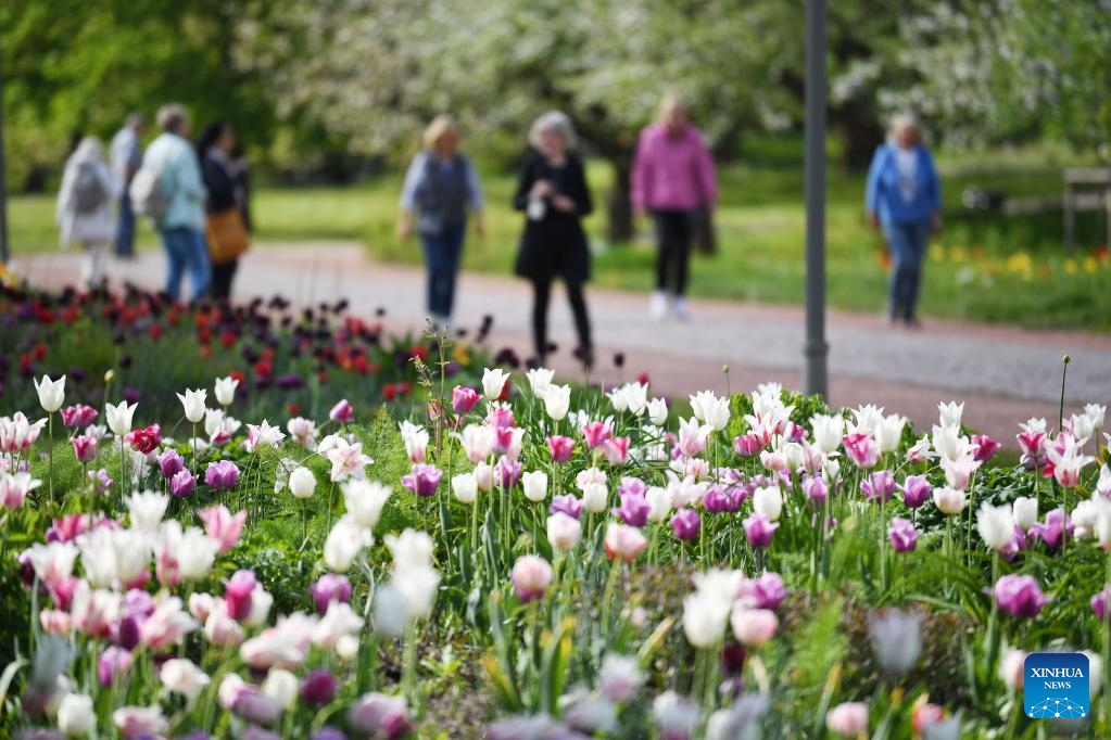 People visit Britzer Garten in Berlin, capital of Germany, May 6, 2022. (Xinhua/Ren Pengfei)