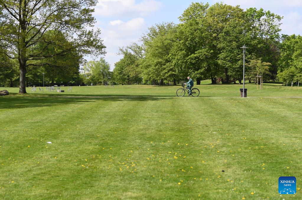 A man rides a bicycle at Britzer Garten in Berlin, capital of Germany, May 6, 2022. (Xinhua/Ren Pengfei)
