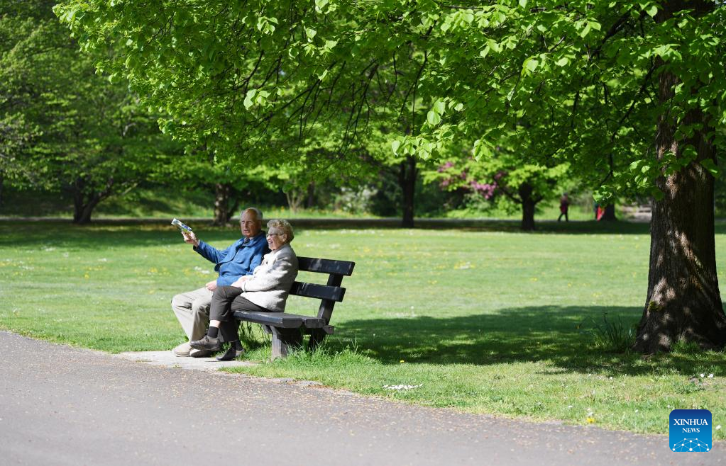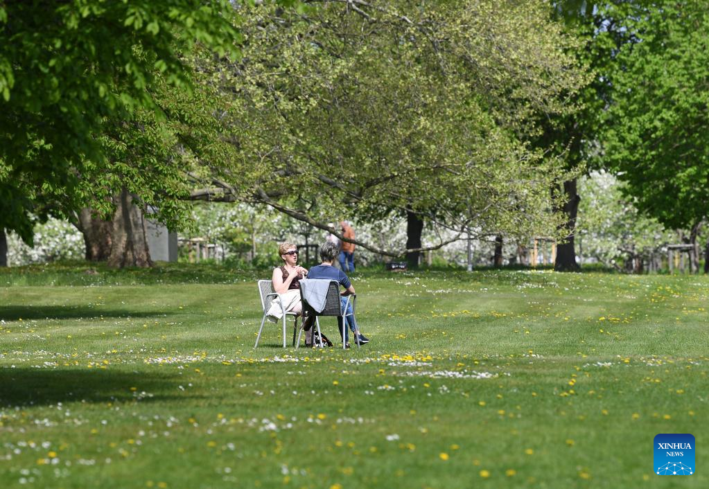 People take a rest at Britzer Garten in Berlin, capital of Germany, May 6, 2022. (Xinhua/Ren Pengfei)