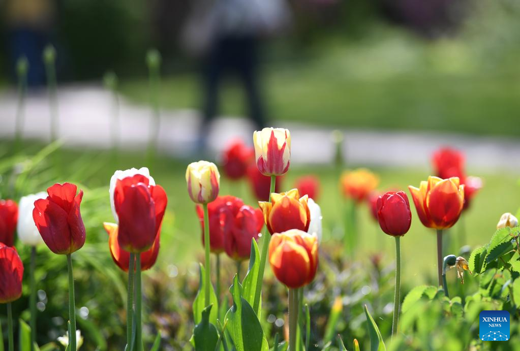Photo taken on May 6, 2022 shows tulips at Britzer Garten in Berlin, capital of Germany. (Xinhua/Ren Pengfei)