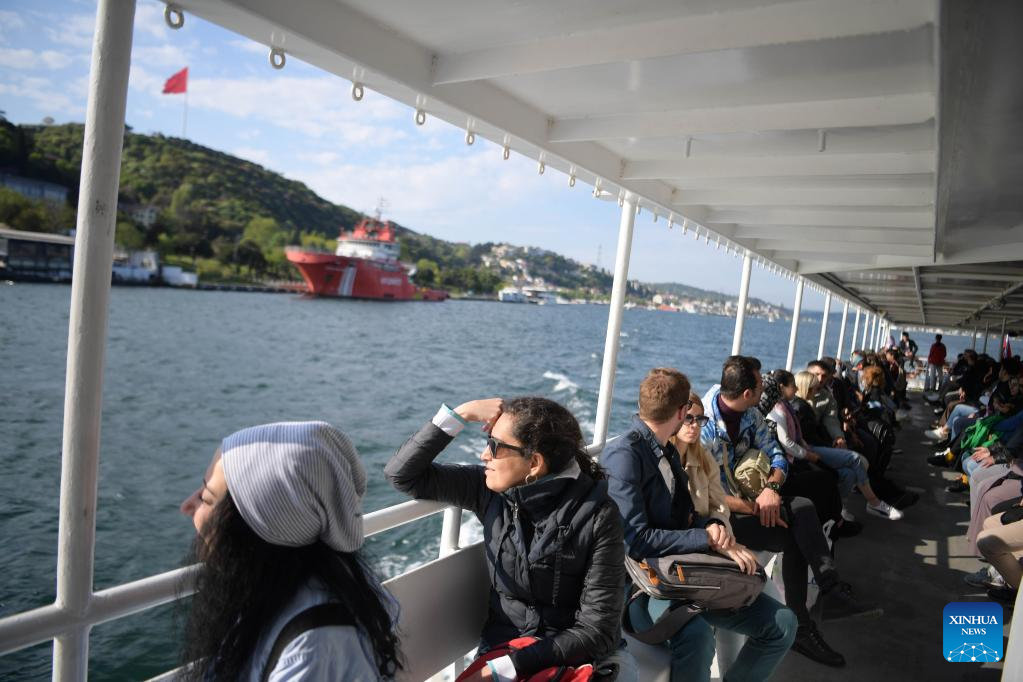 People cruise the Bosporus Strait in Istanbul, Turkey, May 5, 2022. (Xinhua/Shadati)