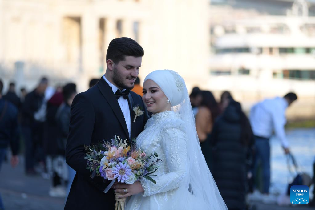 A couple poses for photos in Istanbul, Turkey, May 5, 2022. (Xinhua/Shadati)