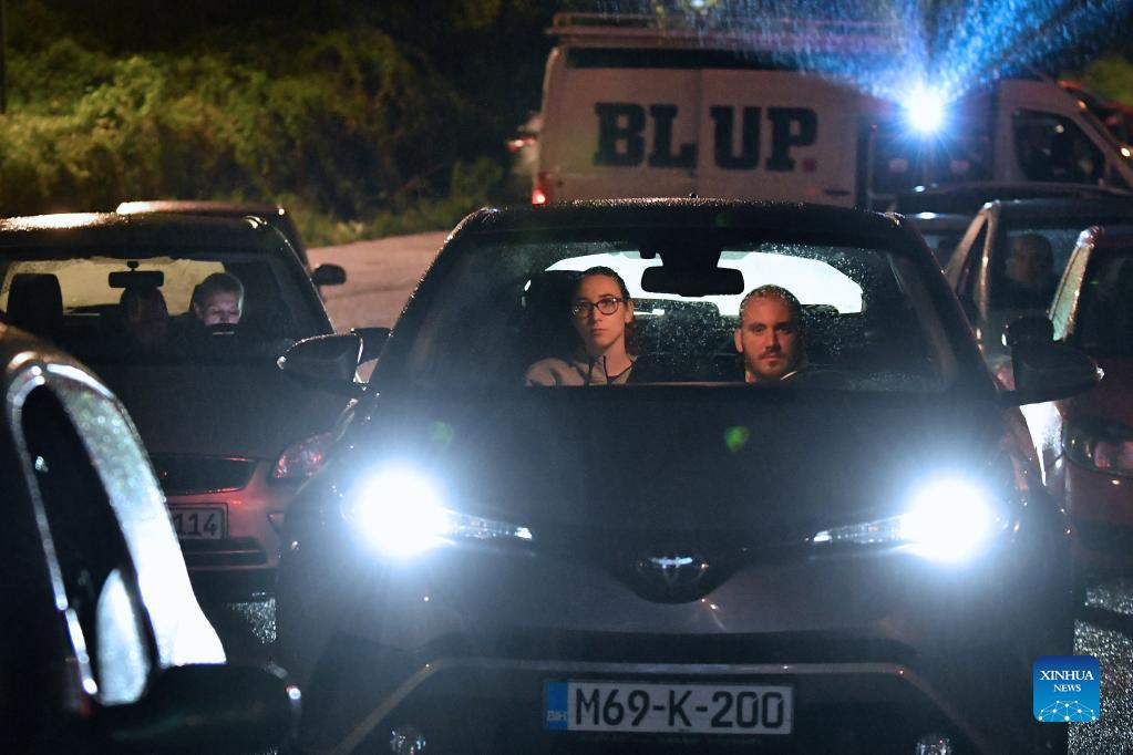 People watch movie Valter (Walter) Defends Sarajevo at a drive-in movie theatre in Sarajevo, Bosnia and Herzegovina (BiH) on May 6, 2022. Bosnian capital Sarajevo made its cult WWII movie Valter (Walter) Defends Sarajevo back to audience by organizing a free screening in a drive-in movie theatre on Friday, a move marking the 50th anniversary of this once worldwide popular movie. (Photo by Nedim Grabovica/Xinhua)