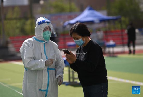 A citizen registers for a nucleic acid test in Chengxi District of Xining, northwest China's Qinghai Province, May 7, 2022. (Xinhua/Xie Tongqiang)