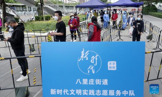 Residents line up for nucleic acid test in Chaoyang District, Beijing, capital of China, May 7, 2022. (Xinhua/Li Xin)