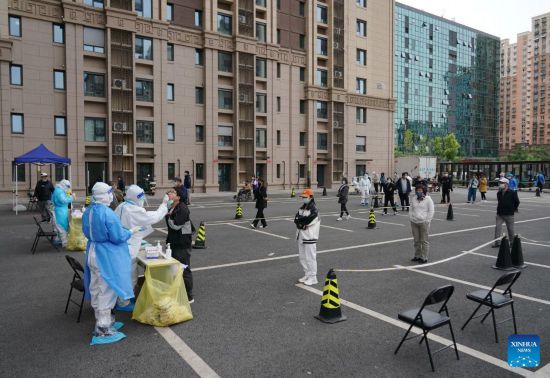 Residents line up for nucleic acid test in Shijingshan District, Beijing, capital of China, May 7, 2022. (Xinhua/Zhang Chenlin)