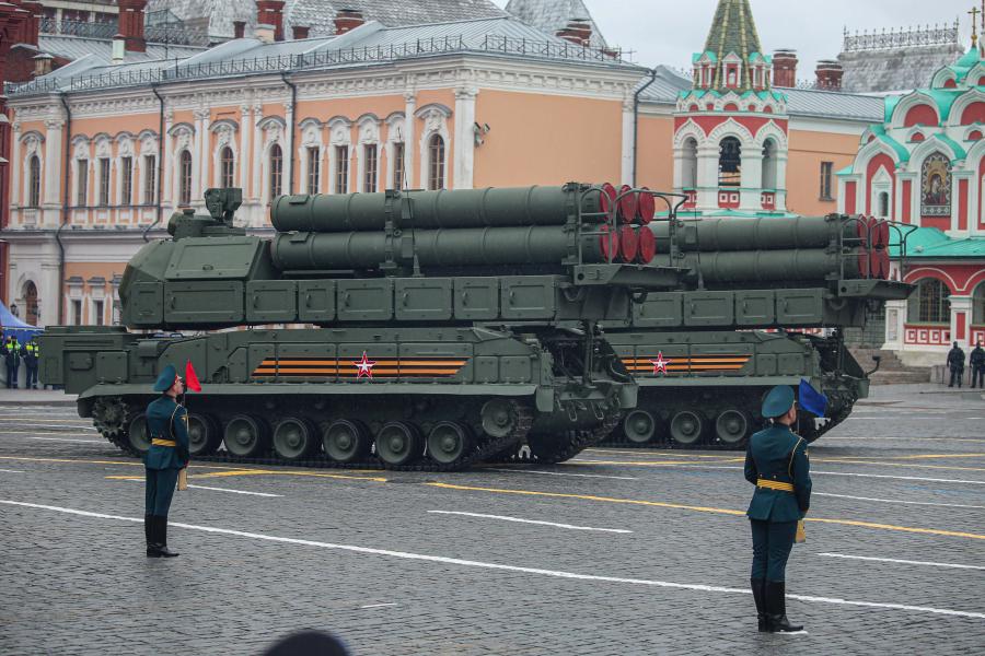 Buk-M3 missile launchers are seen during the military parade marking the 76th anniversary of the Soviet victory in the Great Patriotic War on Red Square in Moscow, Russia, May 9, 2021. (Xinhua/Evgeny Sinitsyn)
