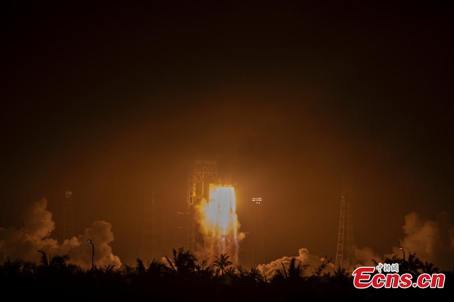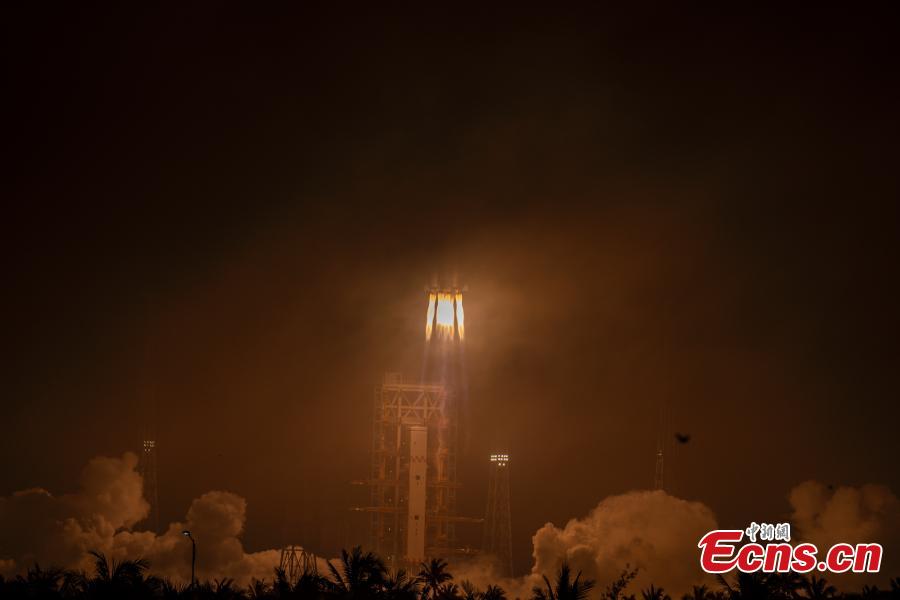 The Long March-7 Y5 rocket, carrying Tianzhou-4, blasts off from the Wenchang Spacecraft Launch Site in south China's Hainan Province, May 10, 2022. China launched cargo spacecraft Tianzhou-4 on Tuesday to deliver supplies for its space station. (Photo: China News Service/Luo Yunfei)