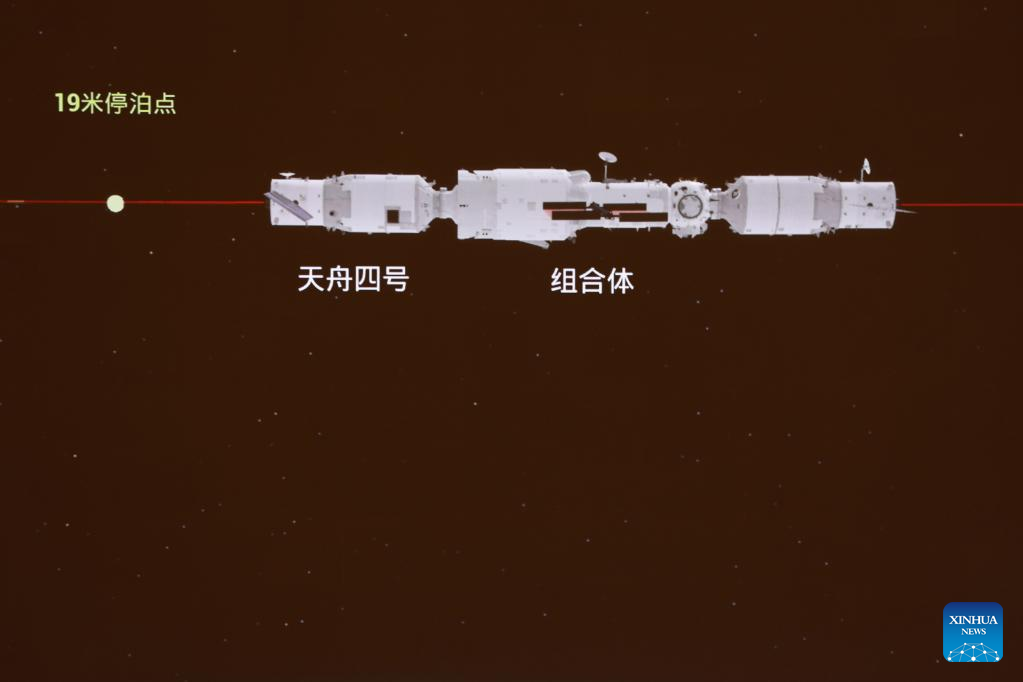 At 8:54 a.m. (Beijing Time), Tianzhou-4 completed a computer-orchestrated rendezvous and docking at the rear docking port of Tianhe, the CMSA said.