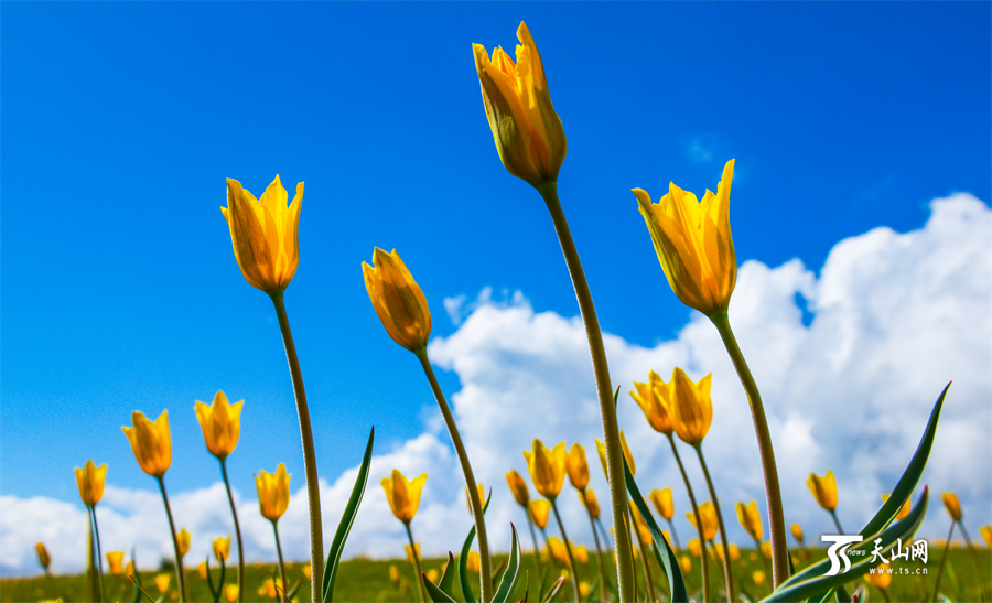 Photo shows wild tulips in full bloom on the shore of the Sayram Lake in northwest China's Xinjiang Uygur Autonomous Region. (Photo/ts.cn)
