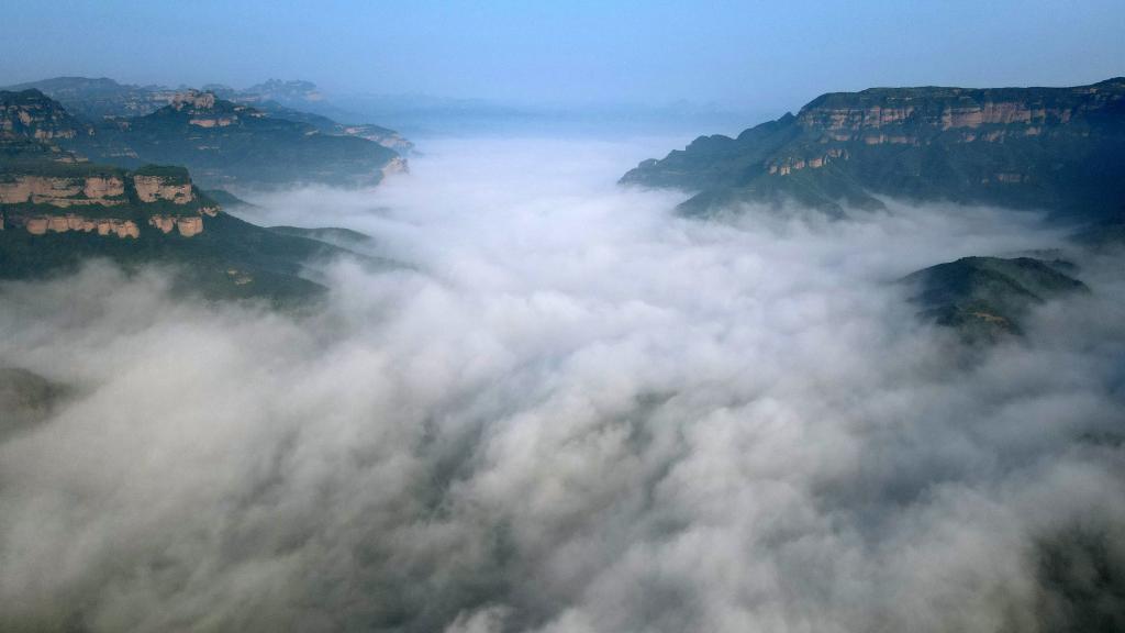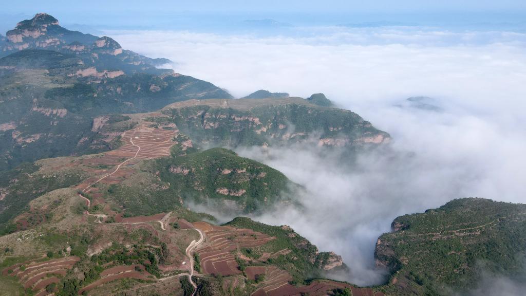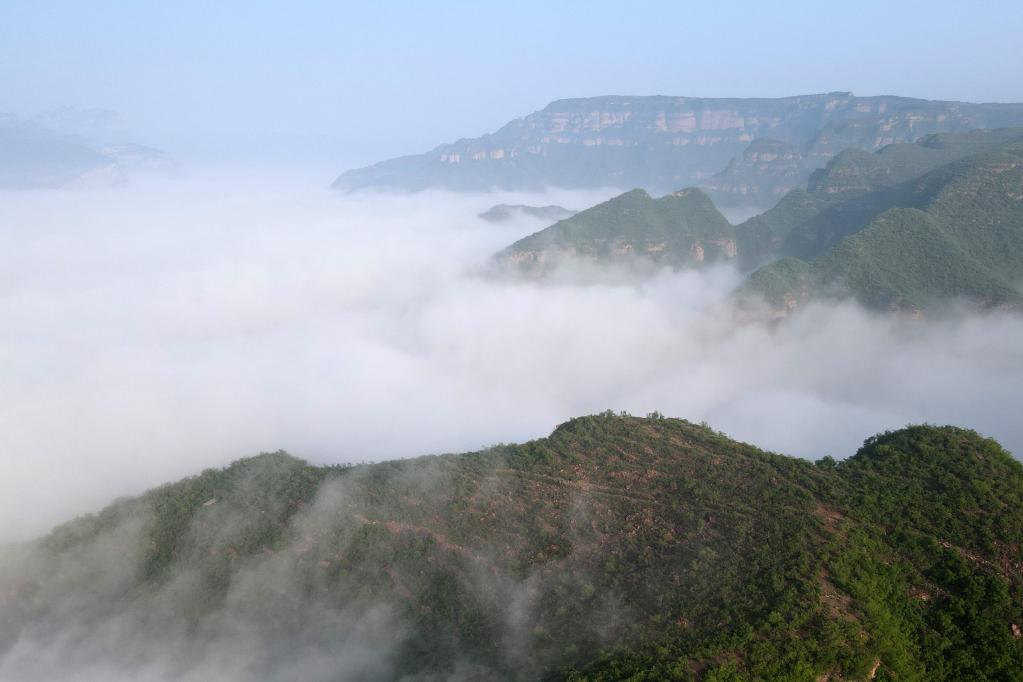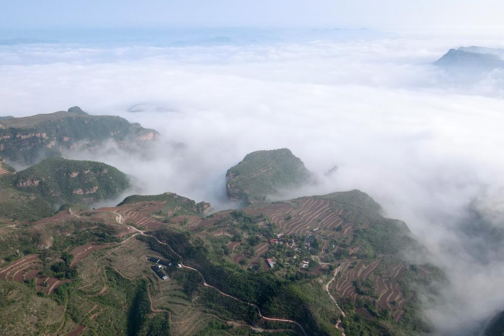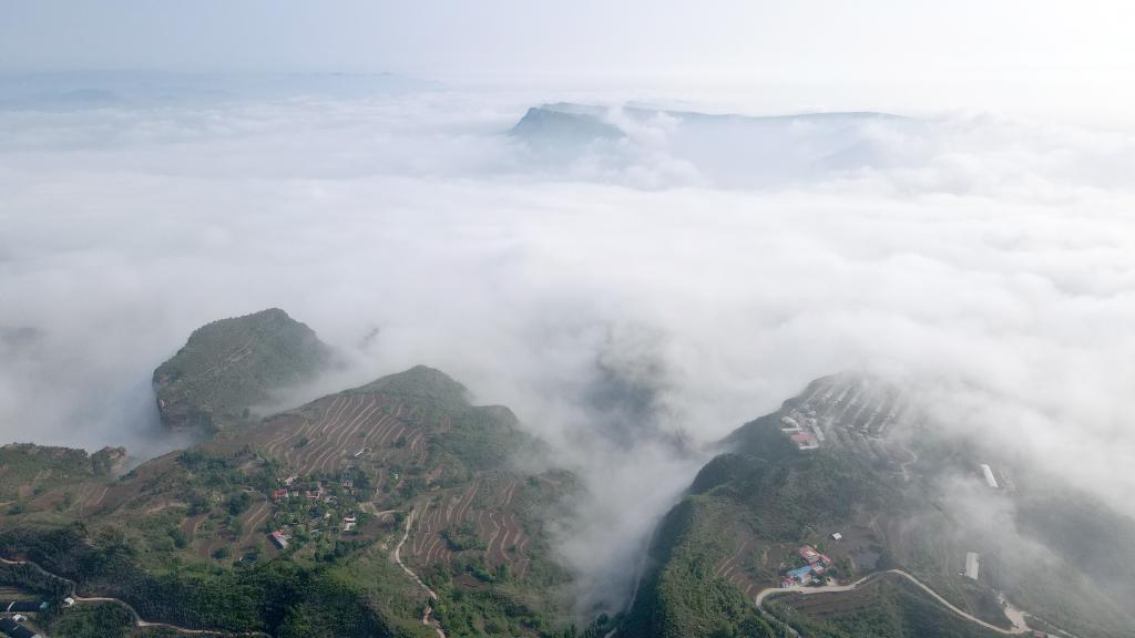 Aerial photo taken on May 10, 2022 shows sea of clouds in Taihang Mountains in Shahe City, north China's Hebei Province. (Xinhua/Luo Xuefeng)