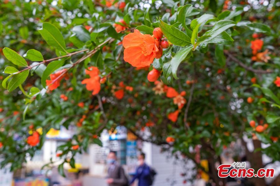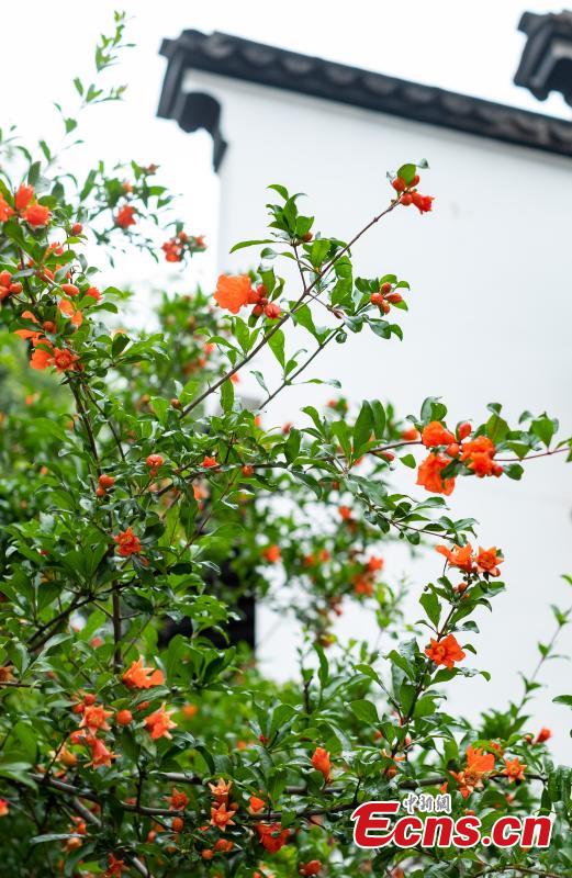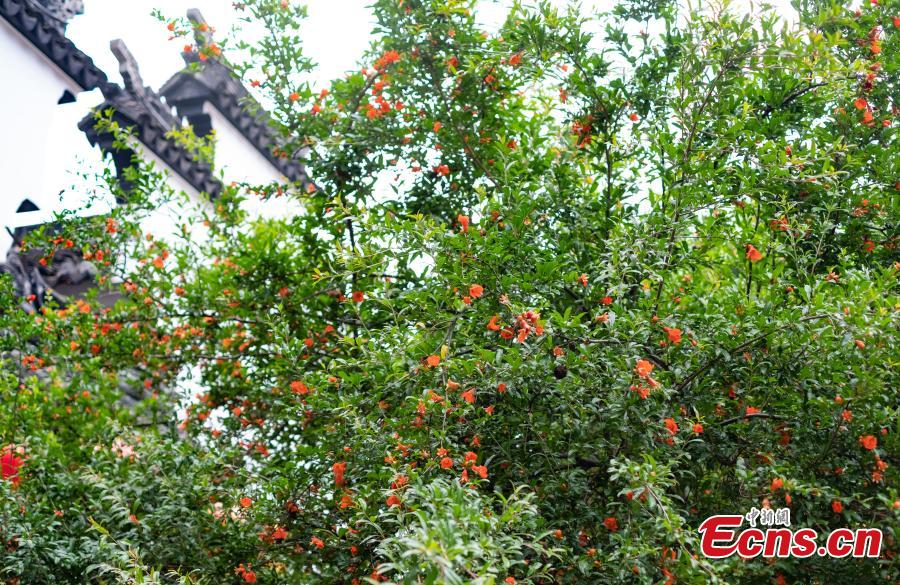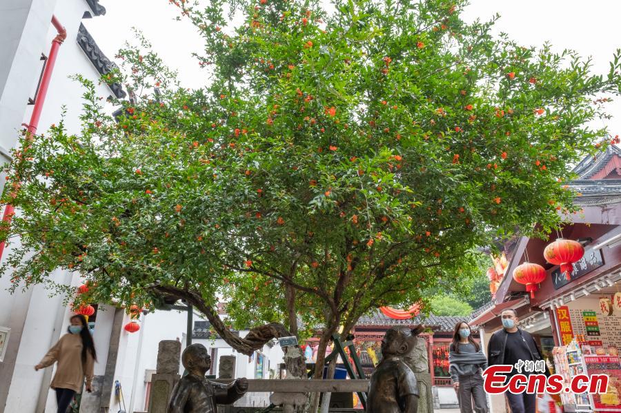 A 122-year-old ancient pomegranate tree is full of red flowers in the yard of Confucius Temple, Nanjing, east China's Jiangsu Province, May 10, 2022. (Photo: China News Service/Yang Bo)