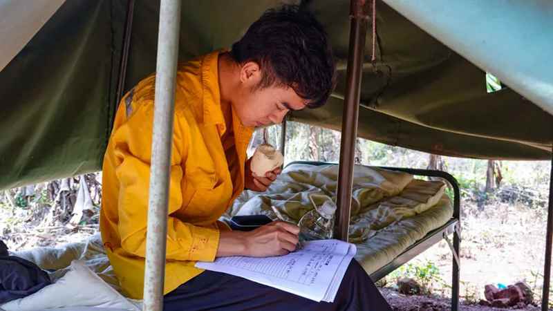 In a green canvas tent near the exit of the No. 2 inclined shaft of the China-Laos Railway’s Friendship Tunnel, the cross-border tunnel connecting Mohan and Laos, Kong Zhijie, a young man born after 2000 from the China Railway Kunming Group Co., Ltd., was soaked with sweat and reviewing relevant records while eating a steamed bun.