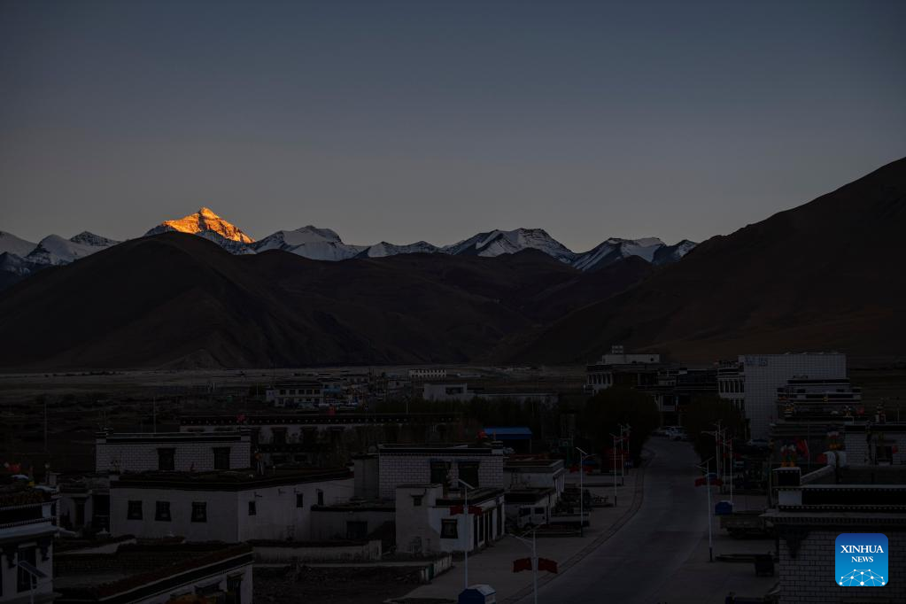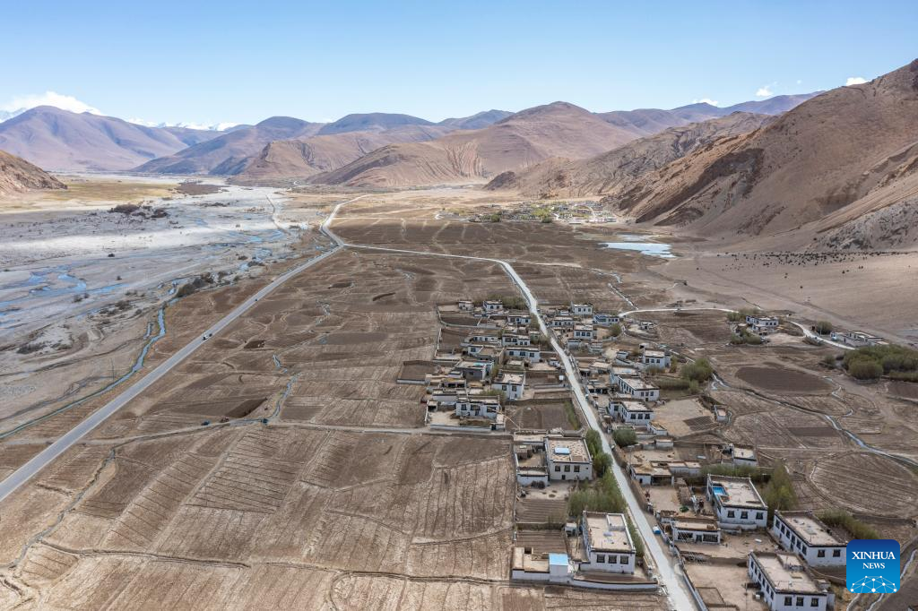 Photo taken on May 10, 2022 shows a view of Zhaxizom Township in Tingri County, southwest China's Tibet Autonomous Region. At an altitude of about 4,200 meters, Zhaxizom is the nearest administrative township to Mount Qomolangma. Due to the high altitude and low temperature, spring farming here does not begin until May. (Xinhua/Sun Fei)