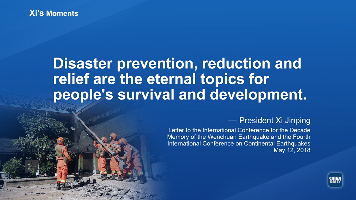 May 12 marks National Disaster Prevention and Reduction Day in China. President Xi Jinping has always stressed a people-centered approach to disaster prevention and relief. Here are some of his remarks on the subject.
