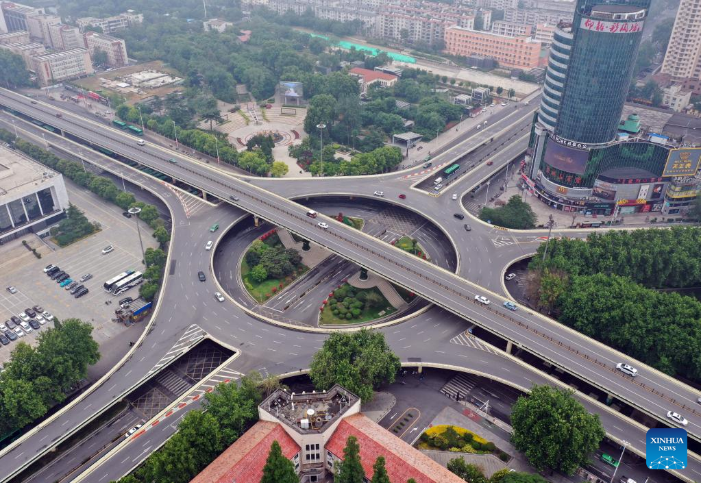 Aerial photo taken on May 11, 2022 shows vehicles running on a flyover in Zhengzhou, central China's Henan Province. Zhengzhou has resumed work and production from May 11 in the city other than closed-off management areas and restrictive control areas. (Xinhua/Li Jianan)