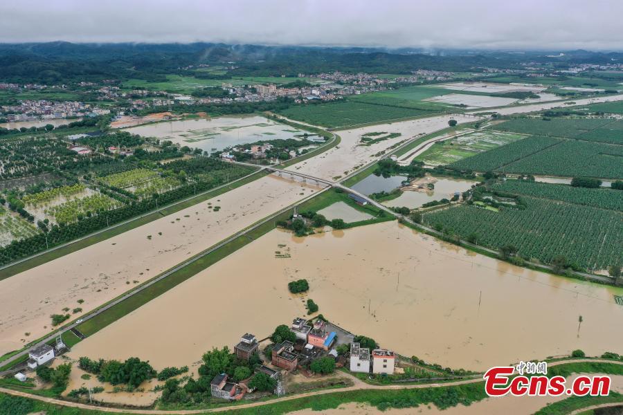 Aerial photo taken by drones shows the flooded Shangxi village in Guangzhou, south China's Guangdong Province, May 11, 2022. (Photo: China News Service/Chen Wenmin)
