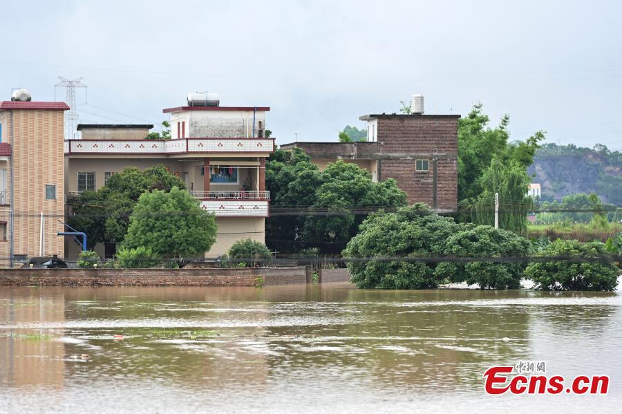 Aerial photo taken by drones shows the flooded Shangxi village in Guangzhou, south China's Guangdong Province, May 11, 2022. (Photo: China News Service/Chen Wenmin)