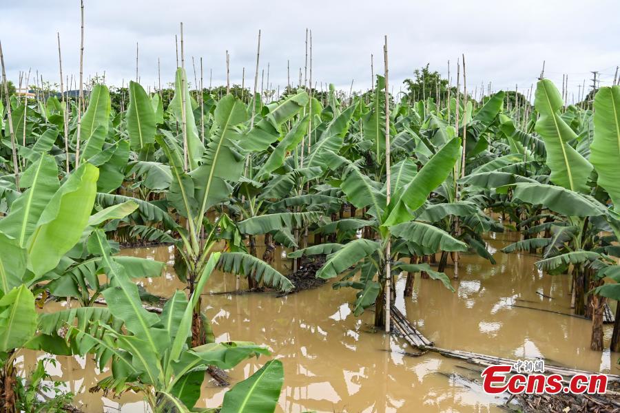 A banana field is flooded by heavy rain in Shangxi village, Guangzhou, south China's Guangdong Province, May 11, 2022. (Photo: China News Service/Chen Wenmin)